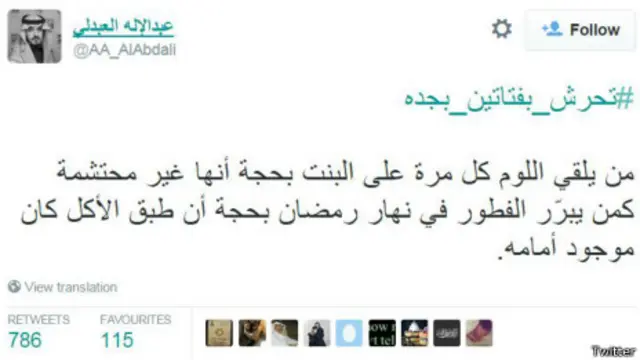 تداول مستخدمو تويتر في السعودية هاشتاغ #تحرش_بفتاتين_بجده مع مقطع فيديو قالوا إنه يُظهر تحرشا جماعيا تعرضت له فتاتان سعوديتان في ثاني أيام عيد الفطر. ويُظهر المقطع فتاتين منقبتين اجتمع حولهما مجموعة من الرجال ما جعل سيرهما صعباً في شارع قيل إنه بمدينة جدة.