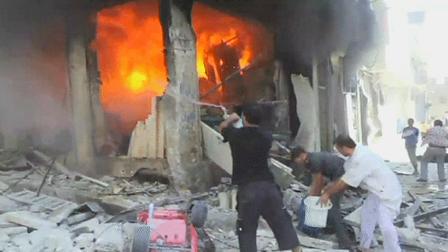قصفت القوات الحكومة السورية منطقة ميسر في حلب احدى المدن التي تشهد تواجداً كبيراً للمسلحين المعارضين للنظام. وتسبب القصف بتدمير عدد من المباني واشتعال النار فيها ما دفع بالاهالي الى استخدام دلاء الماء في محاولة لاطفاء النيران المشتعلة.