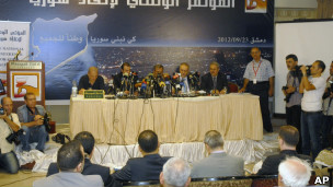 دعت فصائل المعارضة السورية في المؤتمر الوطني "لانقاذ سوريا" الذي عقد في دمشق الأحد إلى "اسقاط النظام السوري برموزه ومرتكزاته كافة" بالطرق السلمية.