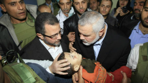 رئيس حكومة حماس المقالة اسماعيل هنية ورئيس الوزراء المصري يزوران الجرحى بغزة