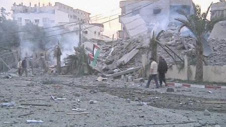 قصف الطيران الإسرائيلي مقر تليفزيون القدس الفضائي المقرب من حماس.