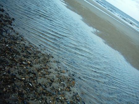 Slanted shot of the beach at Pakefield 2005 at low tide.