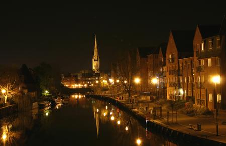 This photo was taken on the bridge leading to the Riverside development in Norwich. It shows the new urban buildings with a backdrop of the beautiful cathedral