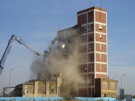 Destruction of a factory to make way for a prison.