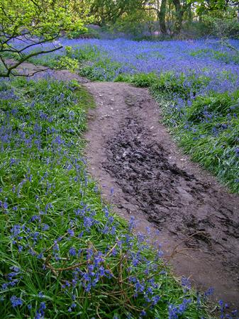 Muddy path through the wild Bluebells. Within walking distance from my home in Loughborough; much preferred to the shops and town centre.