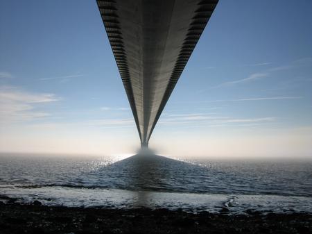 An unusual view of the Humber Bridge, Europe's longest single-span suspension bridge - taken in the early morning.