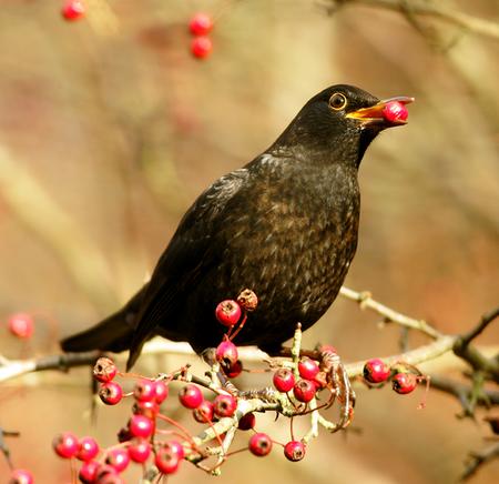 One of our commonest birds seen here feeding on Winter berries in the low afternnon sunshine.