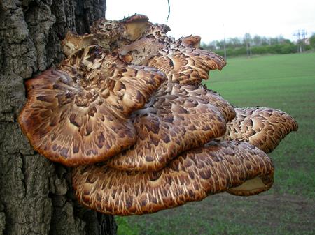 The fungi was on the side of a tree and was taken at the end of April. The actual size was about 450mm in diameter. The camera does not lie, and caught it's vivid colours.
