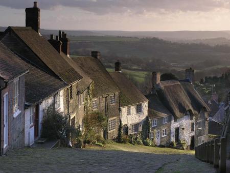 Winter sun over Gold Hill in Shaftesbury, Dorset.