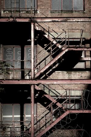 Rusty stairs on an old red brick building in Belfast's Cathedral quarter.