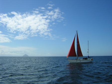 Sailing past the Mull of Kintyre looking south towards the island of Ailsa Craig. Monday 4th July 2005.