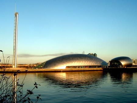 This picture shows the regeneration of the riverside in Glasgow, where there is a huge building programme underway