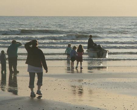 Even though the fishing industry has largely deminished the family of the fisherman left still come down to watch their loved ones go to sea. This picture is of the local crab fisherman going out to sea to check his crab pots.