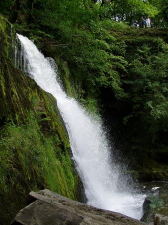 The first of a set of three water falls on the Mellte, near Porth-yr-Ogof, south Wales. The couple stood top right show the scale of the falls.