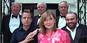 Left to right: Alan Coren, Jeremy Hardy, Francis Wheen, Linda Smith, Simon Hoggart, Andy Hamilton. |