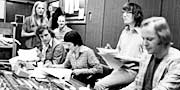 l-r Lisa Braun, Douglas Adams, Colin Duff, Anne Ling, Geoffrey Perkins and Alick Hale-Munro.