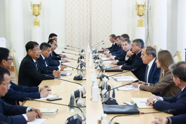 ရုရှားနိုင်ငံ ဗလာဒီဗော့စတော့မြို့ မှာကျင်းပတဲ့ ရုရှားအရှေ့ဖျားစီးပွားရေးဖိုရမ်ကို အကြောင်းပြုပြီး မြန်မာစစ်ကောင်စီဝန်ကြီးအချို့ ရုရှားကိုရောက်နေသလို နိုင်ငံခြားရေးဝန်ကြီးနဲ့ အဖွဲ့ကလည်း မော်စကိုမှာတွေ့ဆုံနေတာပါ။