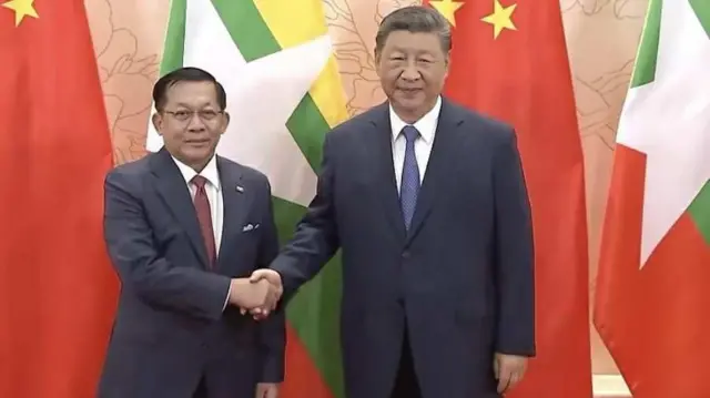 ပြီးခဲ့တဲ့ မေလက ရုရှားနိုင်ငံရဲ့ ရင်ပြင်နီချီတက်ပွဲအခမ်းအနားမှာ သူတို့ သီးသန့်တွေ့ဆုံခဲ့ကြပြီး မြန်မာမှာစစ်တပ်က အာဏာသိမ်းပြီးတဲ့နောက် တရုတ်သမ္မတနဲ့ စစ်ခေါင်းဆောင်တို့ ပထမဆုံးအကြိမ် တွေ့ဆုံမှုဖြစ်ခဲ့ပါတယ်။