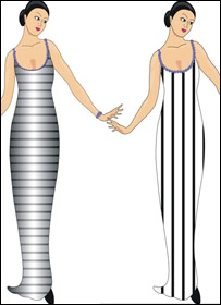 似乎是不愿让物理学家占尽风头,对撞机启动的同时,各种标新立异的科学理论、发现一个劲的往外冒,从“刷牙减少心肌梗塞”到“女人的恶梦比男人多”,再到“坐过山车助你陷入爱河”,抓眼球的标题一个接一个。仔细一看,报告的出处都来自利物浦。原来,英国科学促进会(The British Association for the Advancement of Science)召集各路精英在利物浦过科学节哪。 科学节上可圈可点的“新说”很多,篇幅有限,仅举一例。 横宽竖瘦?你是眼盲还是科盲? 约克大学(University of York)的心理学家汤普森(Peter Thompson)向“横条显宽,竖条显瘦”的穿衣“公理”发起挑战。汤普森向参加试验的志愿者展示200对妇女的照片,照片上的妇女都穿着有横向或竖向条纹的衣服。结果,观看照片者认为,穿横向条纹衣服的妇女比穿纵向条纹衣服的妇女看上去“窄”了6%。 汤普森认为这个结果很有意义,并在会上“痛心疾首”的说:“我认为,作为整个社会,我们都搞错了。我仍然想不明白,我们是从哪得来的竖条显瘦的概念。” 其实,汤普森的理论并不算首创。早在1860年代,一个叫亥姆霍兹(Hermann von Helmholtz)的德国心理学家就创造了视觉错觉的经典之一,“亥姆霍兹方块错觉”(Helmholtz squares illusion)。 很简单,大家不妨自己动手试试。两个大小完全一样的方块,在其中一个方块内平行的划横线,在另一个方块内平行的划竖线。结果,横线的方块比竖线的方块显得略高。