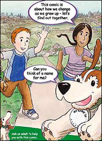 真不开窍,我心里暗笑。到了俱乐部,Henrik 的妈妈去找地方泊车,我带孩子们进到里面换衣服。游泳池旁一拉溜三个家庭更衣室。第一个门牌上显示“Engaged”。Henrik 指着门牌问我女儿是什么意思。“有人、正在使用呀”,女儿显得莫名其妙。 “它还有别的意思,男的和女的也可以e-n-g-a-g-e”,Henrik把最后一个词拖的长长的, 一脸的神秘。“噢,对对对,就是他们要结婚了”,女儿不甘示弱。“行了行了,还是赶快跟更衣室engage吧,不然都让别人engage了”,我赶紧把话岔开。 才八九岁的孩子,真了不得。两小无猜,天真无邪的日子恐怕是屈指可数了。我心里觉得沉甸甸的,猛然间想起日前引起一场轩然大波的儿童漫画手册。 《让我们与Nisha 和Joe一同成长》 英国最大的促进性健康教育慈善组织,家庭计划协会(Family Planning Association, FPA),印制了一套针对六岁儿童的性教育漫画手册,向英国的小学发送。 这套有12页卡通画的手册名叫《让我们与Nisha 和Joe一同成长》(Let’s Grow with Nisha and Joe)。它要求孩子们正确的辨认男孩与女孩之间生理特征的不同之处。其中一个画面要求将“阴部”、“睾丸”的字样用连线连到裸体的男孩和女孩卡通画的正确部位上。 家庭计划协会强调,这份漫画手册的目的是回答六岁的孩子们已经表现出的好奇和提出的问题。这个阶段的孩子对自己的身体并没有太多的下意识和尴尬。让他们了解身体部位的名称,家庭关系等一些基本概念,能够为他们打下一个好的基础,希望这套漫画能作为学校的辅助教材。而反对者却说,一味的提早孩子接触“性”的时间,只强调生理概念而忽略了情感关系,只会适得其反,鼓励孩子更早的“体验性。”