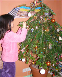 进入12月的第一天,刚满八岁的女儿就迫不及待地把她的诺亚方舟圣诞特别日历摆在了窗台上。船体两侧的小方格上印着1到24这些数字,每天打开一个小方格,等把藏着木刻小动物的小方格一个个打开,24对小动物都摆到船上,圣诞节就到了! 圣诞树也早早的拖进了客厅,花花绿绿的圣诞装饰挂满枝头。人们形容打扮得花枝招展、花里胡哨,总爱说,dressed like a Christmas tree(穿的像棵圣诞树),我家的圣诞树可谓名副其实。 然而,圣诞发烧中的女儿有两个明显的变化,让我心里惴惴不安。往年到这个时候,女儿早把要圣诞老人送给她的礼物清单列好了,放入印有圣诞老人地址的特别信封,一遍遍的催促我到邮局去把信寄走。