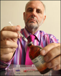 就在猪流感登陆英国的同时,一位澳大利亚医生不远万里也悄然来到英国。他在伦敦希斯罗机场受到移民官的询问,并留下指纹备案。 他就是被称为“死亡医生,Dr Death”的尼茨切克大夫。(Dr Philip Nitschke)。他被称为“死亡医生”,并不是他本人带有致命的病毒,而是因为他是“安乐死,Euthanasia”的积极倡导者。 “死亡医生”与他的DIY“自杀包” 尼茨切克大夫坚信,当一个人认定自己的生命不值得再延续下去的时候,选择安乐死自行结束生命是他/她的基本权利。 尼茨切克大夫此行要在英国各地举行一系列巡回报告会,讲解和演示实施安乐死的知识和技术。在巡回报告的第一站,退休老人占很大比例的伯恩茅斯市(Bournemouth),尼茨切克大夫向与会者展示了他的“DIY suicide kit”(自己动手自杀包)。