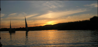 从神庙回来,我们就上了Fluecca,一艘船八个人,没有水,没有电,上厕所的话请找棵树。舒服是真舒服,阳光暖洋洋的照在身上,清风拂面,尼罗河水波荡漾,这个时候唱唱“让我们荡起双浆,小船儿推开波浪”还真是再应景不过,虽说土了点。 当地土人送上传统食物,没处洗手,也顾不得讲究了,抓来就吃,虽然简单,真香啊! 小Tip:如果有想在船上过夜的,请务必自备睡袋,晚上的时候船帮子上拉个布帘子就算是保暖措施了,四面漏风,我是把冲锋衣穿在里面,戴上帽子再加上两条毯子才熬过来的。这样睡很累而且容易感冒,不推荐。 晚餐时分,船在小岛边上停靠,我们踏着月色和一路狗叫进村,访问努比亚人的家。真的很囧,他们家地中央虽然铺了地毯,但是是直接铺在沙子上的----而我们居然要脱鞋! 我坐的地方刚好是沙地,踩着一脚沙,我彻底无语了。他家养了几条小鳄鱼,就在我面前的玻璃缸里,吃饭的时候和鳄鱼大眼瞪小眼,这顿饭的“美味”也就可以想像啦!