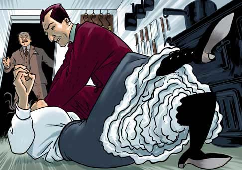 I had entered 221B to no greeting from Billy or from Holmes' housekeeper, the door being surprisingly open, and had made my way to the kitchen upon hearing a noise.