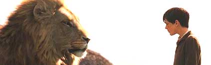 Ystrydebol ydi Neeson fel y Llew - yn gryf ac yn gyhyrog o ran llais a chorff - yn anifail gyda'r mwyaf annhebyg i Grist yr oen.