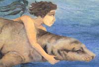Wedi i ddau o blant gael eu geni iddynt mae hi'n dychwelyd i'r môr.
