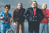 A cheir enwau fel Colin Angau a Dic Dan Dean ar rai o'r cymeriadau dychmygol a John O'Cork (Prif Weithredwr yr Urdd) a'r cynghorydd lleol gwladgarol Gwynus Williams ar rai go-iawn.