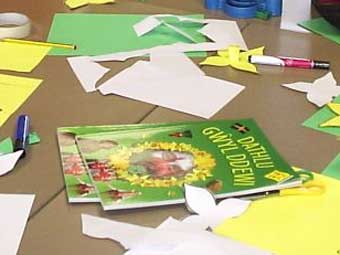 Dathlu Gŵyl Dewi 2007 Plant ysgol yn paratoi gyda llyfr newydd