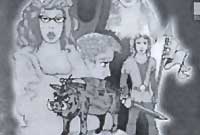 Cymeriadau: Y porthor, Culhwch ac Olwen, Ysbaddaden Bencawr, Y Wrach (Casandra, llys-fam Culhwch), Merch y Wrach a'r Twrch Trwyth