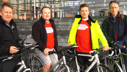 Bythefnos yn ôl, cafodd dau o'r beicwyr gefnogaeth aelodau o'r Cynulliad Cenedlaethol gyda Iestyn a John yn beicio o swyddfa Cymorth Cristnogol yn Radur i'r Senedd ym Mae Caerdydd yng nghwmni Darren Miller AC Ceidwadwyr a Rhodri Glyn Thomas AC Plaid Cymru.