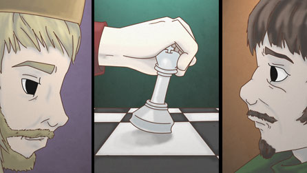 Gwylltiodd Arthur a gwasgu'r darnau gwyddbwyll yn llwch. O'r diwedd, gorchmynnodd Owain i'r faner gael ei gostwng, ac ar unwaith daeth tangnefedd dros y wlad.