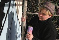 Sut ddechreuaist ti fel arlunydd?: Wedi gadael yr ysgol wen i'n gwybod mai celf oedd beth wen i moyn gwneud. Felly nes i gwrs sylfaen lawr yn Gaerfyrddyn am flwyddyn a wedyn ny ymlaen i Gaerdydd i wneud celfyddyd gain am dair mlynedd, wnes i arbenigo mewn argraffu. Ar ôl i fi adael Caerdydd, ddes i nôl i Aberystwyth am ychydig i weithio gyda'r Academi Gymreig fel dylunydd a ges i lot o waith freelance hefyd i wneud gwahanol bethau, fel cloriau llyfrau i wasg Y Lolfa a wedyn ges i'r cyfle i wneud y murlun cyntaf yn Nhal-y-bont yn 1991.
