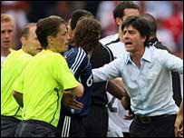 Dechreuodd y digwyddiadau wrth i chwaraewr canol cae;r Almaen, Tim Borowski, wneud ystumiau tuag at yr Aerchentwyr i "fod yn ddistaw" wedi iddo rwydo y bedwaredd cic o'r smotyn i roi'r tî cartref 4-2 ar y blaen.