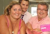 A dyma nhw yn eu hysblander pinc - gan gynnwys par o sandalau pinc!