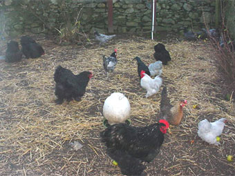 'Yr ieir yn yr ardd cyn cael ei golchi a'u gwneud yn barod i'r diwrnod mawr.'