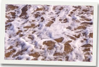 Mae glan y môr gyda'r pyllau bach ar y creigiau wedi gadael fel cronfa wedi i'r trai ddigwydd, gyda gorchudd o wymon yn 'magu ynom awydd i ymchwilio.