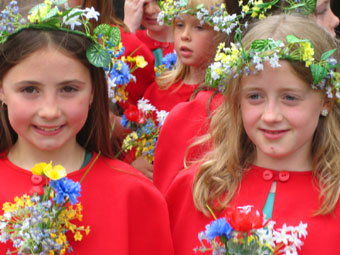 Rhai o ferched y ddawns flodau yn seremoni cyhoeddi Eisteddfod Genedlaethol 2009 yn Y Bala, ddydd Sadwrn, Mehefin 28, 2008 next page