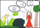 6. Rhedodd Dwynwen at Maelon yn crïo, a dywedodd: "Mae'n rhaid i mi briodi tywysog arall!"