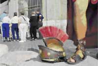 Mae gladiatori Rhufeinig newydd ennill buddugoliaeth o bwys mewn brwydr yn erbyn yr awdurdodau