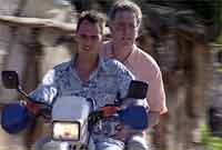 Ac yntau wedi bod yn aelod o Eirin Peryglus does ryfedd fod cerddoriaeth yn chwarae rhan bwysig yn ei fywyd yn Kenya, ac mae'n aelod o fand jazz, Y Dynion Dur, sy'n cyfarfod ddwywaith yr wythnos ac sydd yn ôl ei ddisgrifiad ef yn cheesy a chanol y ffordd ond yn bwysicach fyth yn codi arian at elusennau amrywiol. Yn ystod ei ymweliad profodd Hywel groeso swyddogol gyda'r ddiod draddodiadol o win palmwydd - heb anghofio tywallt ychydig ddiferion ar y lawr 'i'r cyn-deidiau' cyn yfed. Ond mewn gwlad sydd mor hardd a phrydferth mae Hywel yn darganfod fod problemau cymdeithasol enbyd. Ar Dy Feic, BBC Cymru ar S4C, Ebrill 6, 8.30.