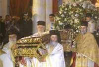 Ddefte lafete ffos ec tw anesperou ffotos ce ddocsasate Christon ton ananstanda ec necron. "Deuwch, derbyniwch y gwawl nad yw bydd yn ddiffygiol a bendithiwch Grist ac atgyfododd y meirw."