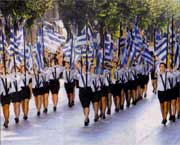 Hefyd mae plant ysgol a phobol yn eu gwisgoedd Cenedlaethol o bob rhan o ardal Macedonia: - yr ardal yr ydym ni yn perthyn iddi.