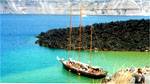 Ef oedd yn iawn wrth gwrs. Fel'na mae hi ar Ynysoedd Groeg. Haul tanbaid, awyr ddigwmwl o fora gwyn tan nos, a'r môr yn las, las. Tywod du dan draed Ond ar Santorini tywod du, folcanig, sydd dan eich traed ar y traethau - ond wrth ichi blymio dan wyneb y dwr, a'ch snorcel a'ch masg am eich pen, mae'r pysgod amryliw i'w gweld yn eglur mewn dwr glân a'i lesni eang yn ymestyn ymhell o'ch blaen.
