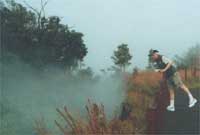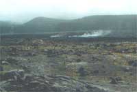 Er bod ffrwydradau a chwdfeydd Kilauea yn dyner ou cymharu ag eraill,pan fyddo'r lafa yn llifo, does dim a all ei wrthsefyll unwaith y gwnêl ei siwrnai dyngedfennol i'r môr. Llosgi'n golsyn wnaiff popeth a saif yn ei ffordd. Ond ymlaen a ni ar ein taith un filltir ar ddeg o gylch gweflau Kilauea gan oedi yma ac acw i syllu'i mewn i'r cawg mawr hyll.Wel a'n helpo ni.Dyna le! Creigiau a thomennydd cerrig, llwch a lludw ymhobman. Cymylau o stêm yn codi drwy'r craciau, a drewdod sylffwr yn tagu ein corn gyddfau. Duw a'n helpo petai Kilauea'n deffro
