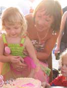 Chware teg i John doedd hi ddim yn beth hawdd bod yn y wisg drwchus na a hithau'n tua 36 gradd. Un o'r uchafbwyntiau I mi oedd gweld Ela yn chwythu ei chanhwyllau ac, yn naturiol, bu'n rhaid canu yn Saesneg ac yn y Gymraeg gan chwythu ddwywaith. Dwi'n credu i'r ail chwythiad na fwrw'r stwffin allan ohoni a do fe cafodd y dywysoges fach noson dda o gwsg ar drothwy ei thrydydd pen-blwydd. Dyna ni te - dau barti pen-blwydd llwyddiannus ar y to wedi dod ac wedi mynd. Efallai bod paratoi yn waith caled ond mae gweld y boddhad mae'n ei roi i'r rhai bychain yn fythgofiadwy. Tybed beth fydd hi ishe wneud ar ei phedwerydd pen-blwydd? Rwyf wedi dechrau meddwl am y carry homes yn barod!