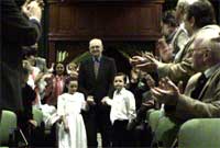 Braf felly yw cael rhannu â chi luniau o'r bardd buddugol, Clydwyn ap Aeron Jones o'r Dyffyn. Yn y llun cyntaf gwelir ef yn cael ei dywys i'r llwyfan gan Eric Cortinez a Sharon Williams ac yn yr ail lun gwelir rhan o seremoni'r cadeirio a'r coroni sy'n cyd redeg yn Eisteddfod Trevelin. Yn y cendir mae Maer Trevelin a rhai o swyddogion yr Eisteddfod ac aelodau o Orsedd Y Wladfa. Yn cael ei choroni am ysgrifennu'r gerdd orau yn yr iaith Sbaeneg y mae Hortensia Simms de Cantero y mae ei merch, Ana Clara, wedi ymgartrefu yng Nghymru ers sawl blwyddyn bellach. Yn tywys Hortensia i'r llwyfan yr oedd Alin Sangiofanni a welir yn gwisgo crys T Ysgol Gymraeg yr Andes a Jennifer Williams. Wrth son am Drevelin a'i heisteddfod rhaid i ni ddymuno'n dda i Bibiana Portugues sy'n fiocemegydd yn yr ysbyty yn Esquel ac sydd, gyda'i gwr, yn rhedeg hostel Casa Verde yn Nhrevelin gan ei bod wedi cael ei henwebu fel un o gystadleuwyr Dysgwr y Flwyddyn yn Eisteddfod Genedlaethol Cymru Casnewydd 2004. Edrychwn ymlaen i glywed mwy a dymunwn pob lllwyddiant iddi yn enwedig gan ein bod yn gwybod mor galed y mae wedi gweithio i ddysgu'r Gymraeg a'i bod yn mwynhau cael ymwelwyr Cymraeg i'r hostel er mwyn cael y cyfle i ymarfer yr iaith gyda siaradwyr o Gymru.